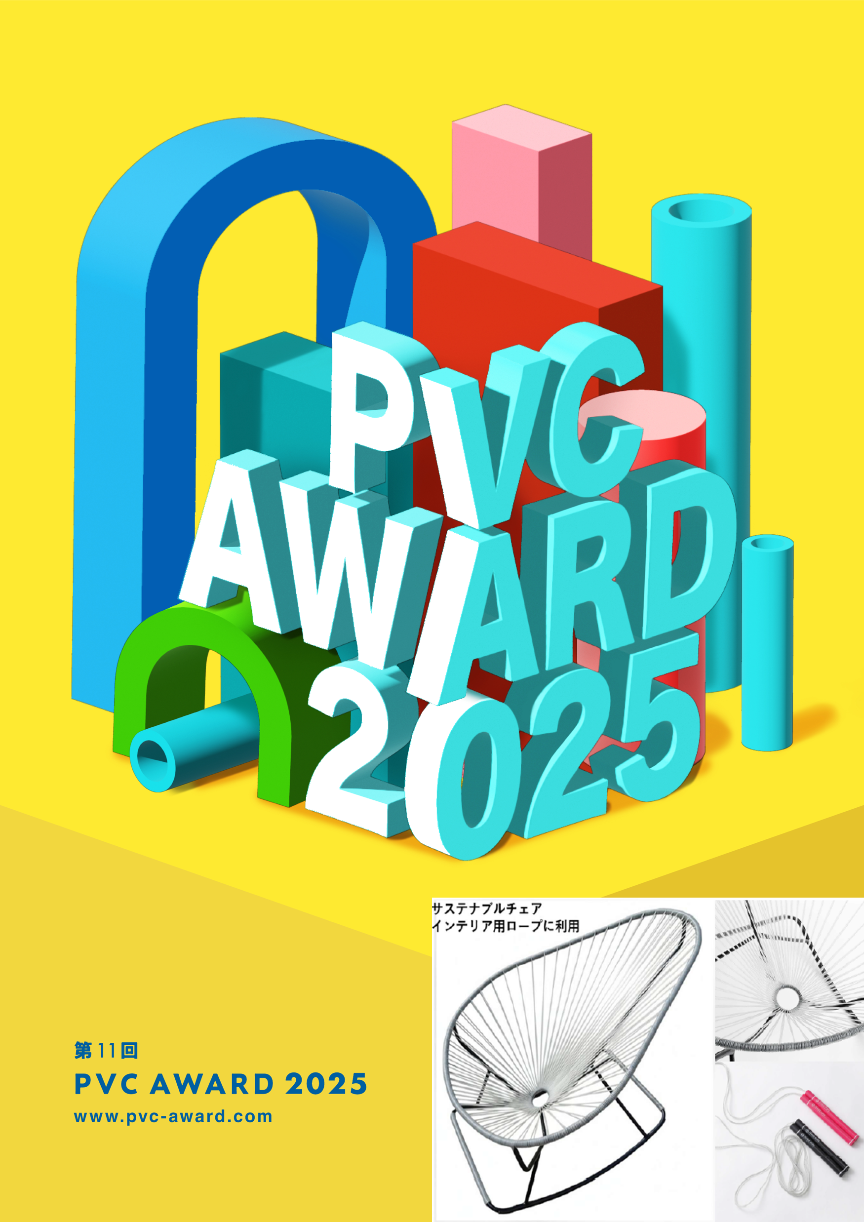 今回受賞した作品は、医薬品包装に使用されるPTP(Press Through Package)シートから当社技術により分離・回収された再生PVC(ポリ塩化ビニル)素材を活用した「PTPシートリサイクルロープ」です。本アワードでは、従来リサイクルが困難とされていたPTPシートをマテリアルリサイクルし、新たな製品(※使用例:「縄跳び」「サステナブルチェア」)へと生まれ変わらせた技術力と、資源循環への貢献が高く評価されました。