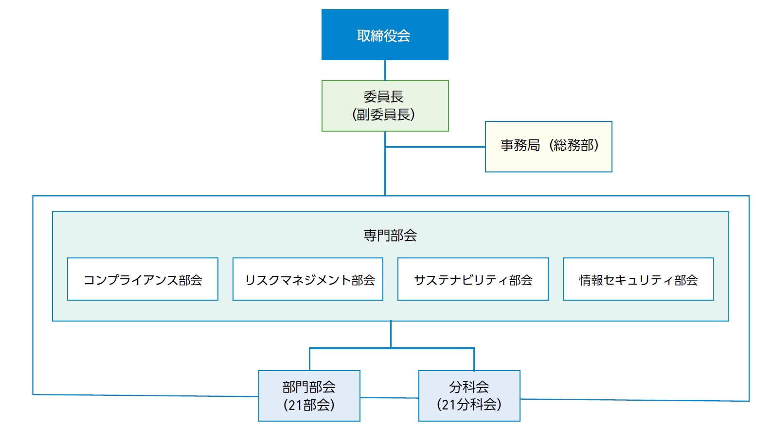 また、TRM委員会では、組織横断的かつ重要性の高いリスクをマネジメントするために「専門部会」を設置し、リスクの認識と評価、対策化、モニタリング、是正および教育などを計画的に行っています。これらのリスク管理状況などは定期的にレビューを実施し、結果は取締役会および監査等委員会に報告されます。